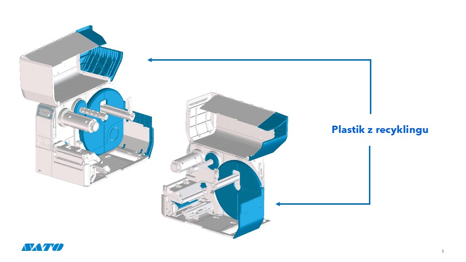 Plastiki pochodzące z recyklingu firmy Konica Minolta spełniają rygorystyczne normy jakościowe firmy SATO dotyczące ognioodporności, wytrzymałości na zginanie, gęstości i szybkości skurczu formy. Plastiki pochodzące z recyklingu są stosowane w 40 procentach elementów obudowy drukarek CL4NX Plus i CL6NX Plus. Firma SATO spodziewa się zmniejszyć emisję dwutlenku węgla o 65 procent1 w częściach, w których zastosowano plastik pochodzący z recyklingu, w porównaniu z częściami konwencjonalnymi, bez uszczerbku dla jakości, jaką zapewniają materiały pierwotne. Stosowanie plastików pochodzących z recyklingu w swoich flagowych drukarkach sprzedawanych na całym świecie nie tylko wspiera globalne działania na rzecz zrównoważonego rozwoju firmy SATO, ale także pozwala jej klientom przyczynić się do zmniejszenia emisji dwutlenku węgla.